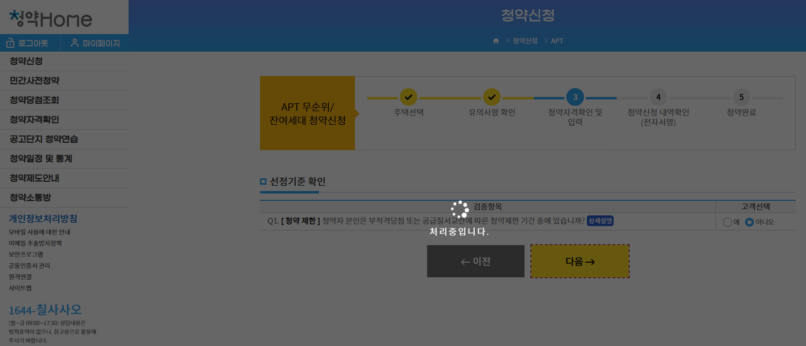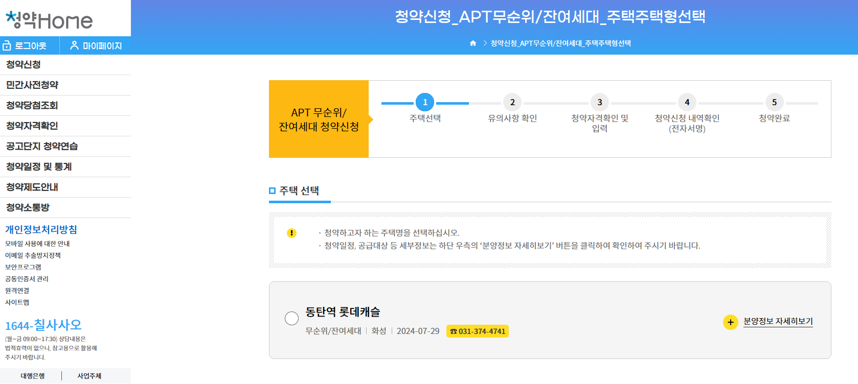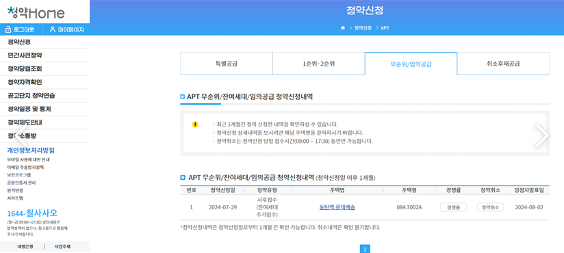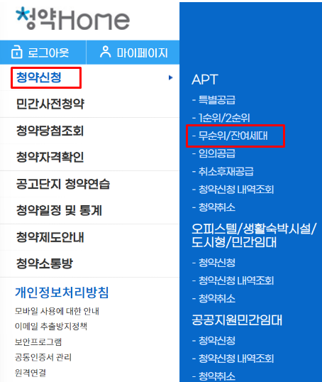 청약HOME > 청약신청 > APT > - 무순위/잔여세대