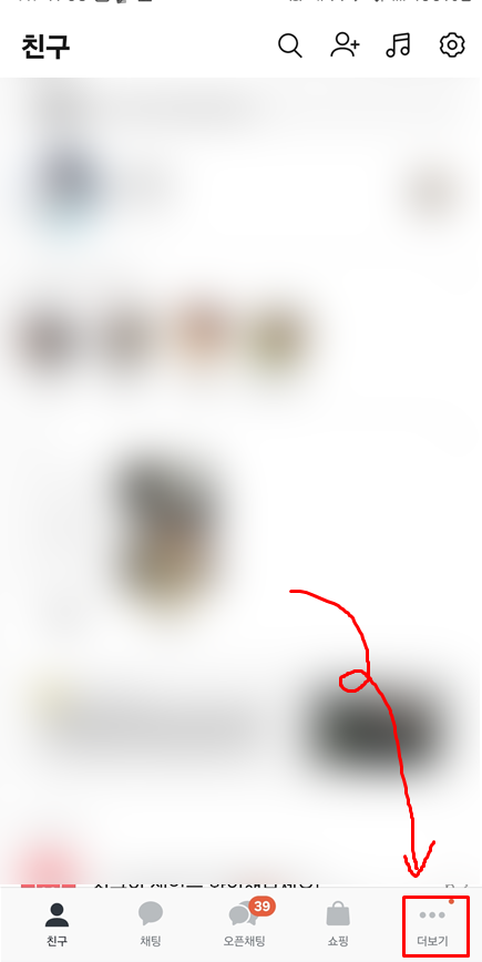 1. 먼저 카카오톡 켜시고, 맨아래 맨 오른쪽 더보기 클릭해주세요!!!