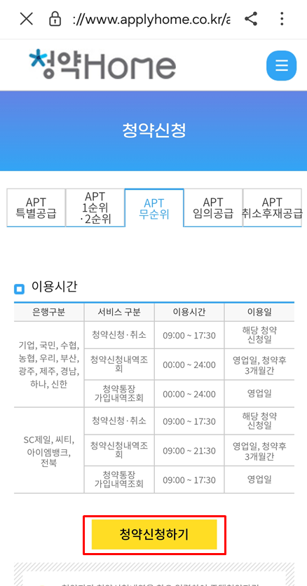 순차적으로 청약신청하면 끝!!!