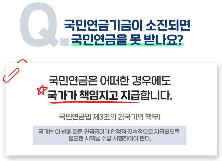 * 국민연금법 제3조의2(국가의 책무) 국가는 이 법에 따른 연금급여가 안정적ㆍ지속적으로 지급되도록 필요한 시책을 수립ㆍ시행하여야 한다.