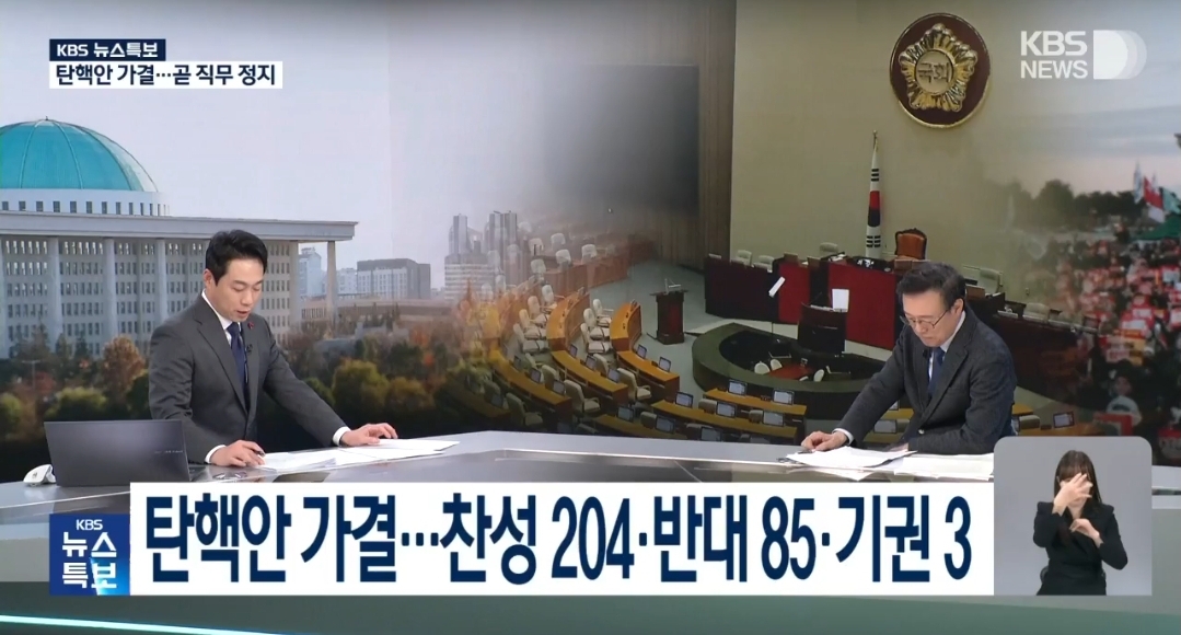 따라서, 국회의원 3분의 2 이상인 200명 이상 찬성으로 탄핵안 가결되었습니다! 현직 대통령에 대한 탄핵안 가결은 헌정 사상 세번째입니다.