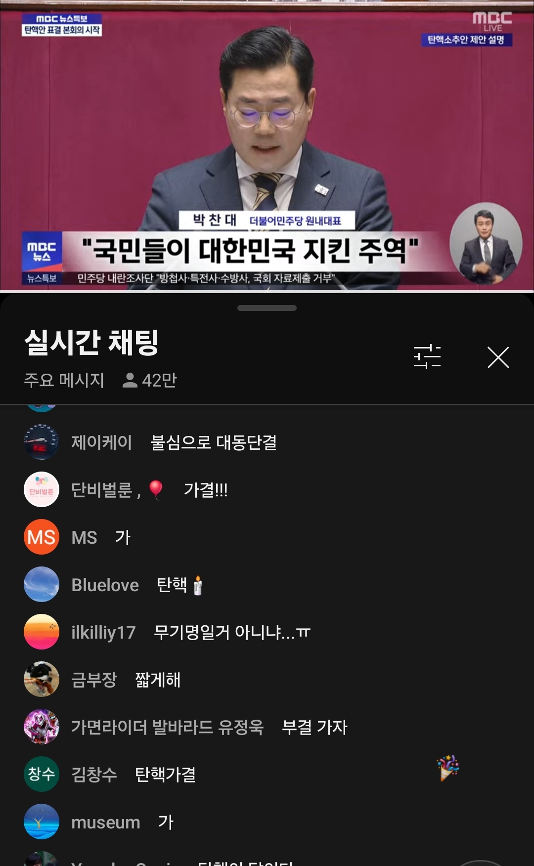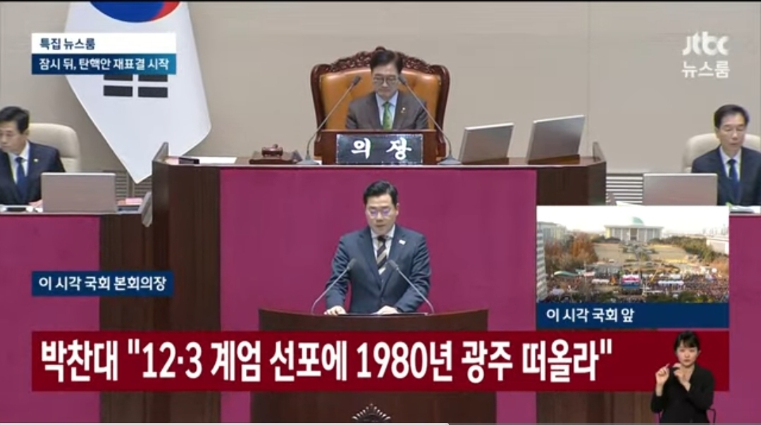 탠핵안 표결전 본회의 장면입니다.
