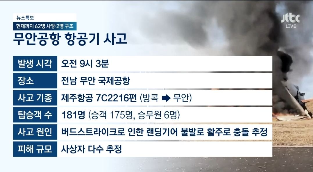 181명 탑승. 179명 사망. 2명 구조.